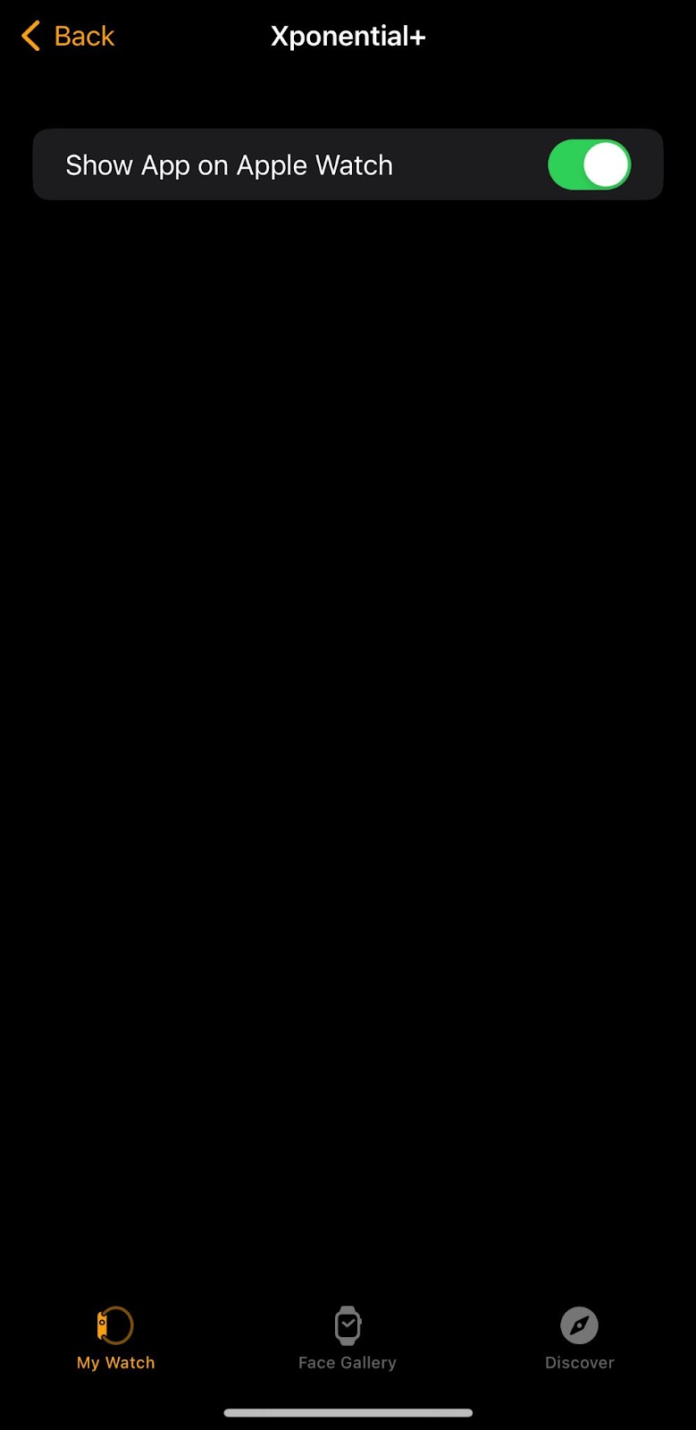 Scroll down to XPONENTIAL+ & toggled “off”. This will uninstall the app on the Apple Watch.