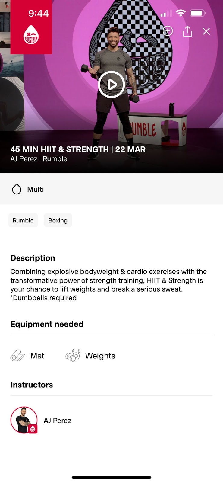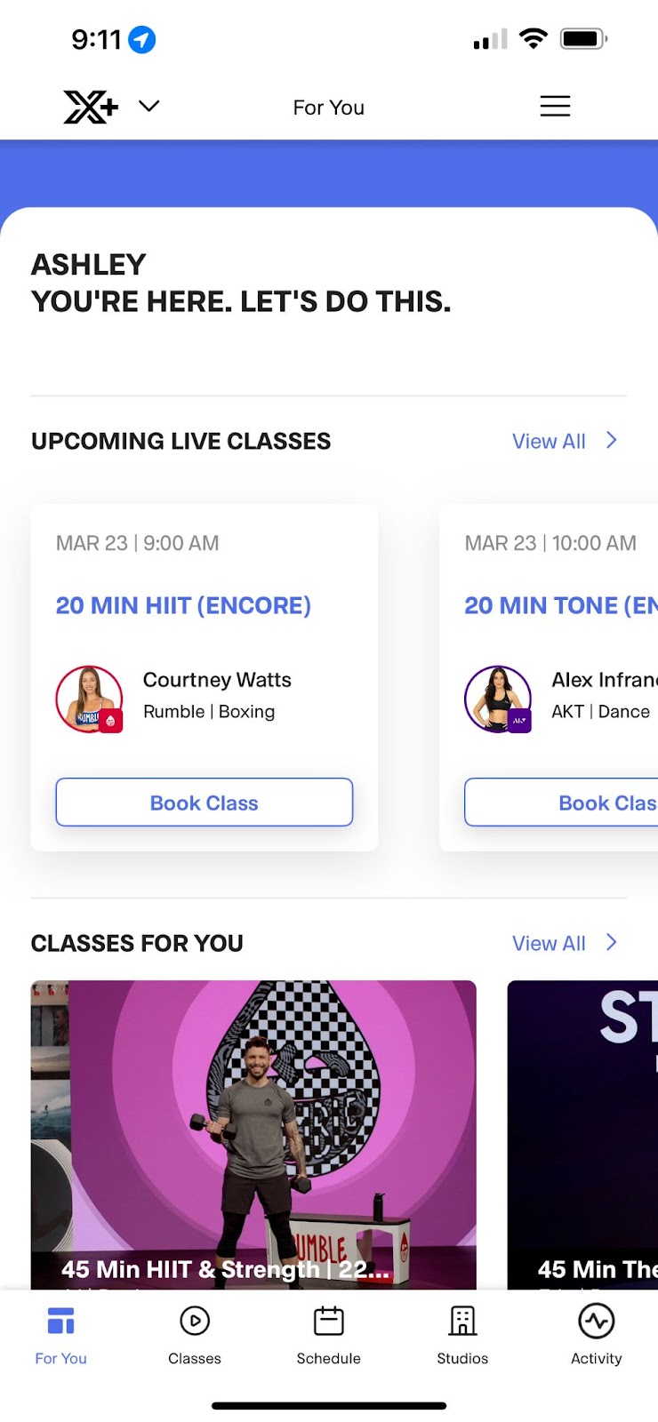 After stopping the class or completing it entirely, the activity data will sync to the mobile device & be stored in the ACTIVITY HISTORY section for tracking.