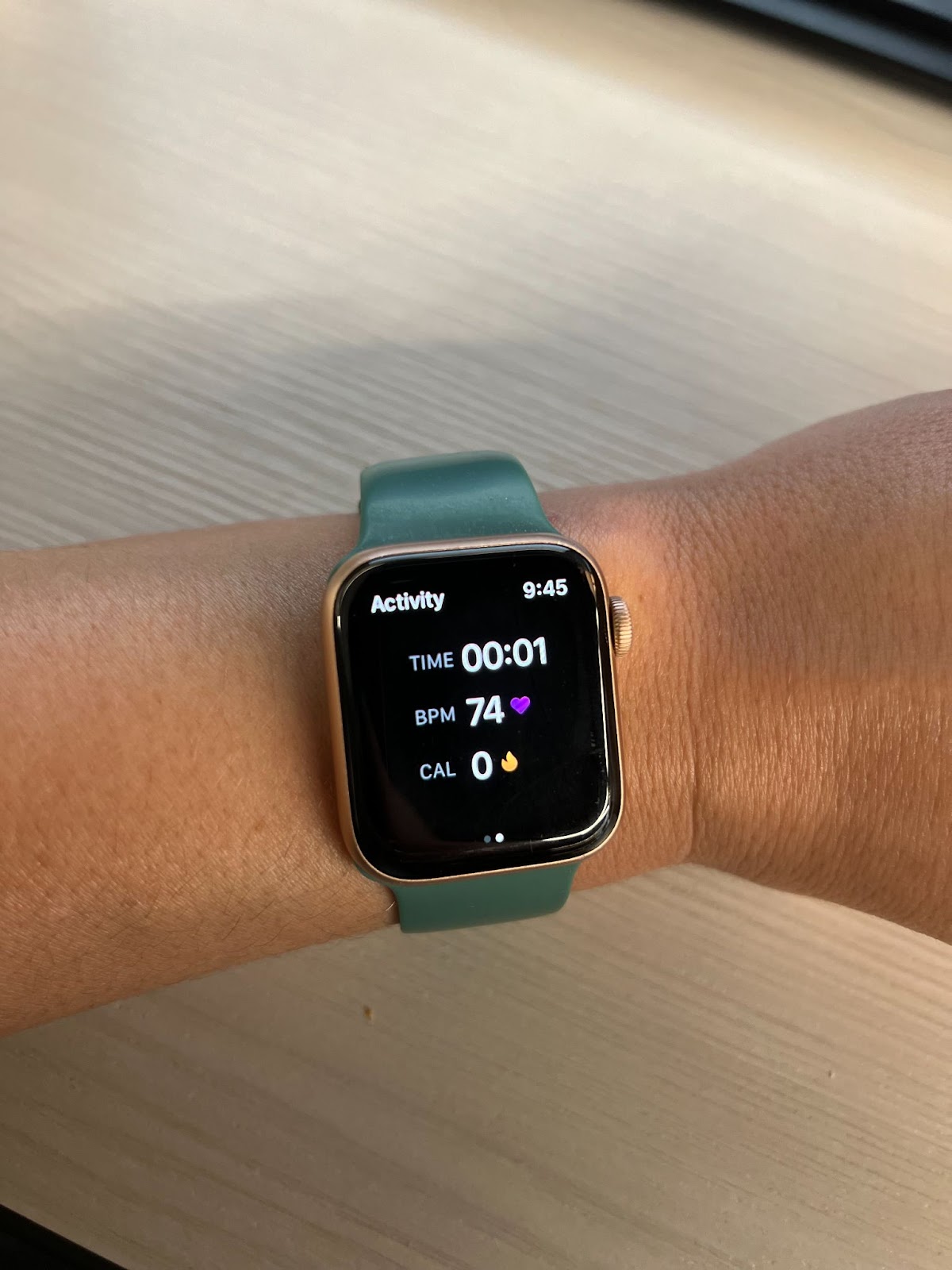 Apple Watch tracks real-time heart rate activity & calories burned.