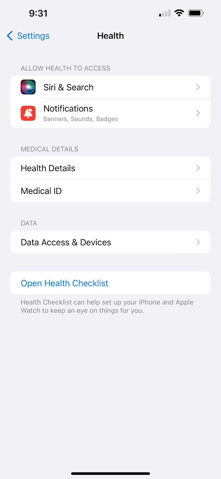 Open the HEALTH APP and select DATA ACCESS & DEVICES