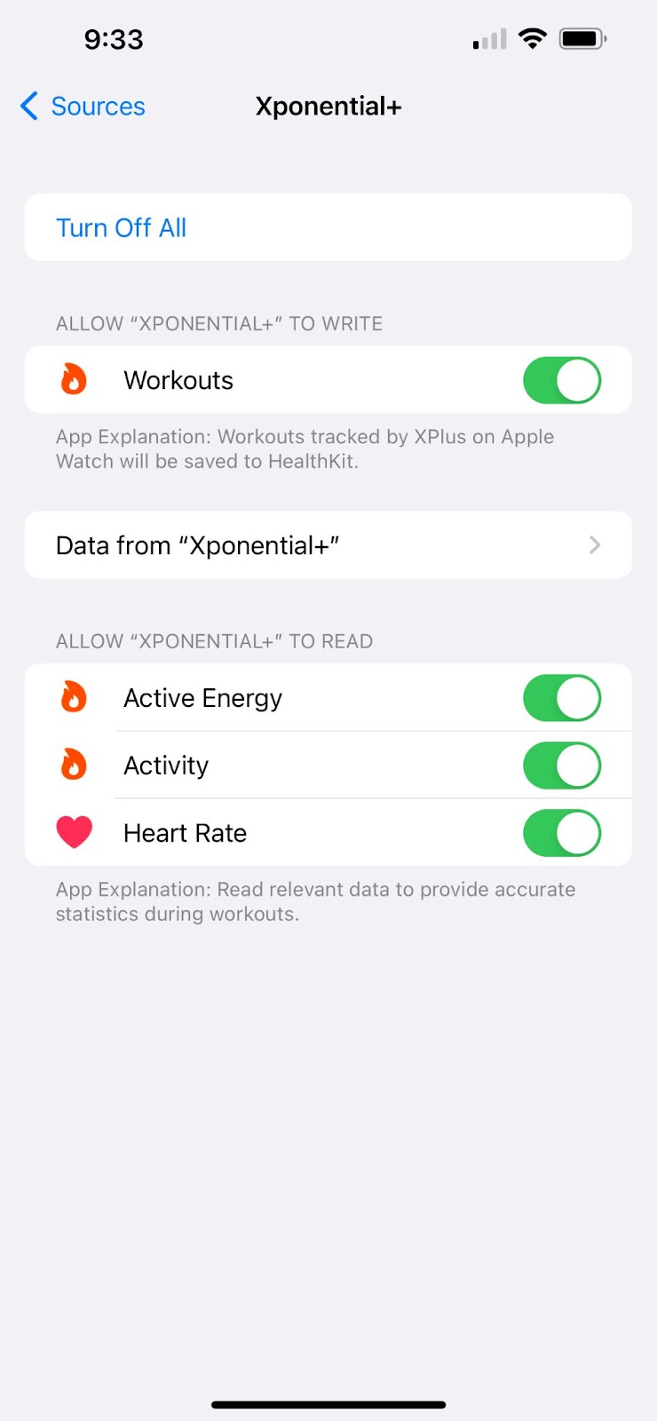 Select the XPONENTIAL+ app, turn everything on.