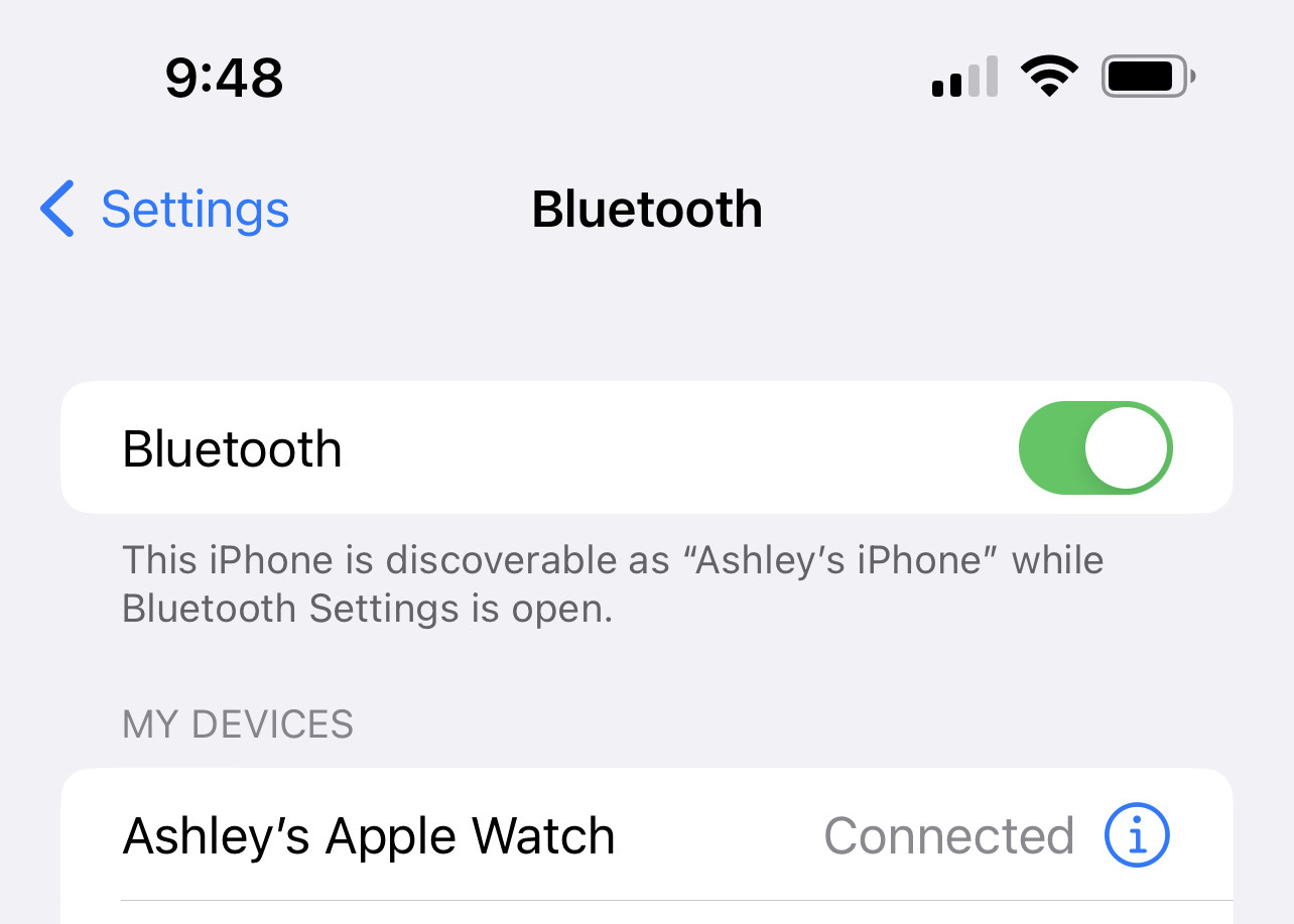 Step 1: Make sure the Apple Watch is synced with the iOS mobile device, check this in your Bluetooth settings. If the Apple Watch shows “Not Connected”, connect the device to your phone.