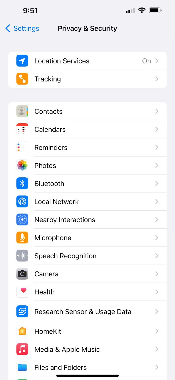 Open PRIVACY & SECURITY