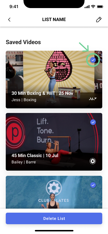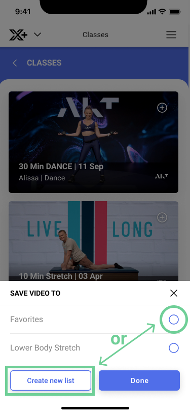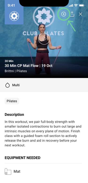 Select a class you want to save to a playlist & select the + icon in the top right corner.